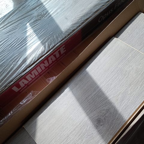 Fiskebenslaminat gulv som er veldig enkelt å legge! Har flere bilder av ferdig lagt gulv dersom det er ønskelig. Har 5 pakker. 1,6kvm per pakke. 250kr per kvm