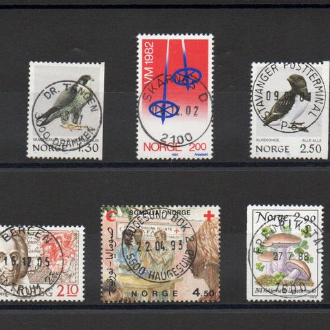 Lott med porto og provisorie merker selges. Kan hentes etter avtale, ved forsendelse kommer 31,- i tillegg