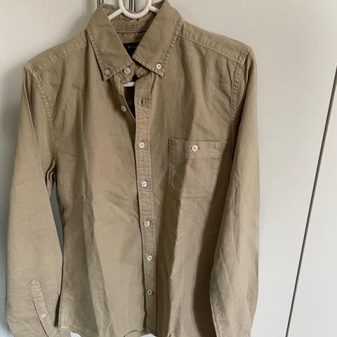 Pen Selected-skjorte i turkis med stilige striper, regular fit, størrelse L/42. Pent brukt og godt bevart – perfekt til både jobb og fritid. Mykt og behagelig materiale som sitter komfortabelt.
