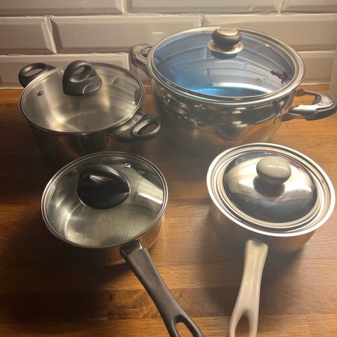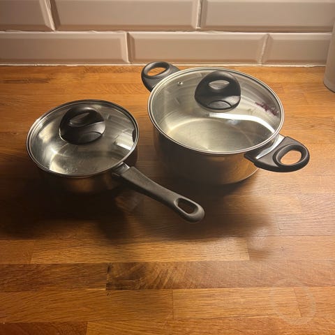 Liten kasserolle (1 liter) med lokk i rustfritt stål med hvitt handtak. Passar for allmen matlagning og har en slitesterk konstruktion. Rommer 1-1,5 liter