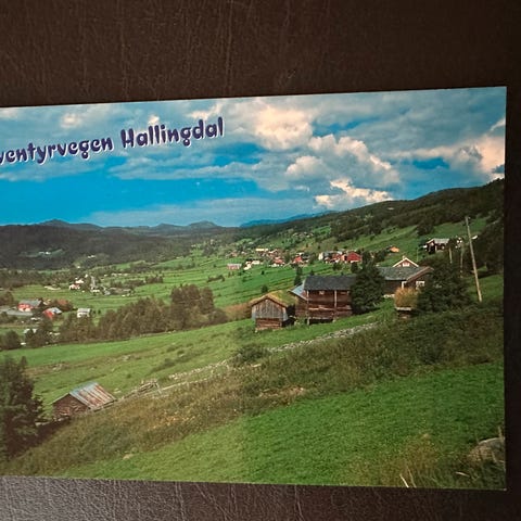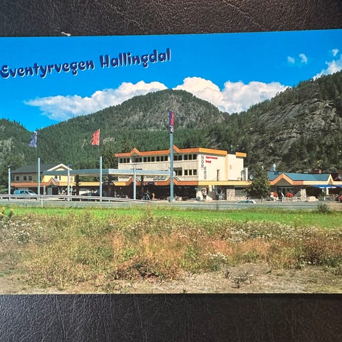 Postkort med motiv fra Moen Camping i Hemsedal. Står skrevet Eventyrvegen Hallingdal på forsiden. Meget pent, ubrukt storformat. Se bilder