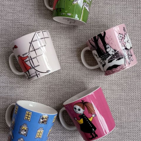 Arabia Moominvalley kopp med motiv fra Mummi-parken i Japan.