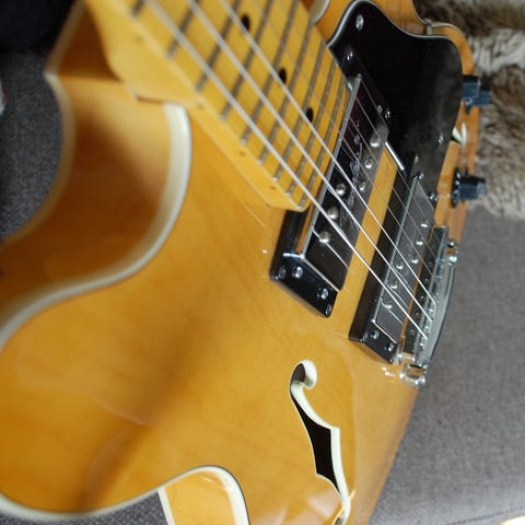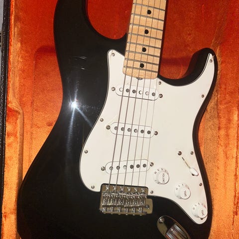 2. Denne er en såkalt hot rod strat og kommer i en nydelig candy apple red. Denne har noiseless pickups i hals og midten og en Dimarsio tone zone i broen.