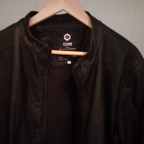 Jack & Jones Skinn Jakke i størrelse M. Jakken er laget av skinn og har svart farge. Egnet for menn.