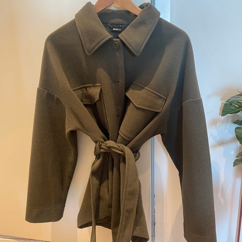 Shaket / jakke / skjorte fra H&M. Noen bruksmerker/nupper i stoffet. Mye god bruk igjen. Jeg har brukt den som jakke på vår/tidlig høst. Romslig i størrelsen.