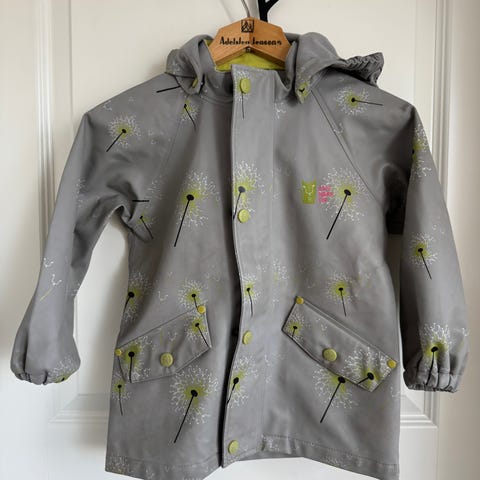Fòra regnjakke frå Kattnakken, str. 92/98. Pent brukt til to barn, nokre små flekkar på armane, sjå bilete, har ingenting å seia for bruken. Nyvaska før sal. Kan sendast mot frakt.