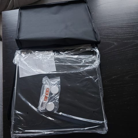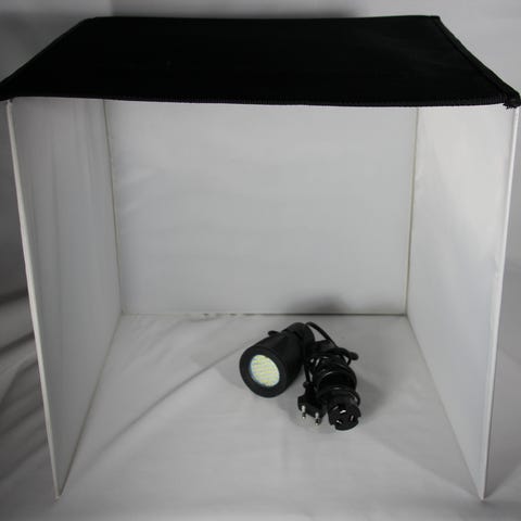 Ja mini fotostudio. Du får straks bedre bilder og finere fremvisning av ting du skal presentere. Bruker dette hele tiden på ting jeg selger. Svært fornøyd. Er sort filt for bakgrunn, enkelt ta ut og riste hvis støv. Har holdt godt i årevis. Kan vendes. Luke i toppen så kan ta bilder ovenfra. Lys i taket foran og bak, har 3 modus; hvitt, gult eller begge. Og 11 lysstyrker på disse og slå av.. Lengde usb/strøm er 150 cm.