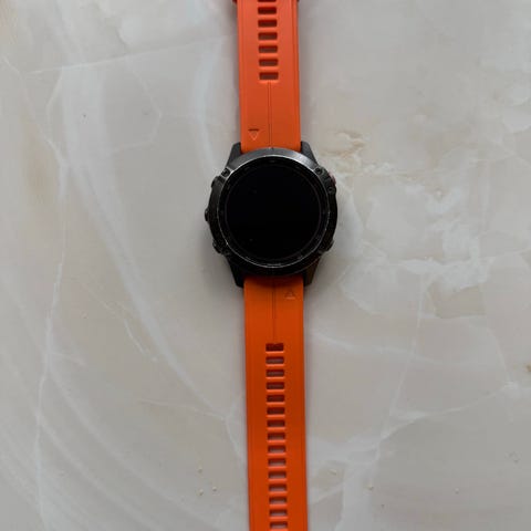 Garmin Fenix 5x sapphire smartklokke med svart urkasse og svart rem. Klokken har pulsmåler og flere digitale funksjoner. Egnet for aktivitetssporing og hverdagsbruk. Selv om klokken er noen år har den fortsatt relativt god batterikapasitet. Hvis man følger løype som er lastet inn på kart vil jeg anslå at batteriet holder i 7-8 timer. Med vanlig gås-sporing holder den lenger. Til løpeturer holder den i flere dager, litt avhengig av lengde på tur.