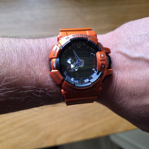 Svart finish gir et taktisk / nøkternt, funksjonelt uttrykk, og tydelige timeindikatorer er lette å lese ved et øyekast. Den digitale visningen viser tidtakere og alarmer uten å forstyrre hovedurskiven. Remmen er utskiftbar, så du kan bytte den etter aktivitet eller stil.