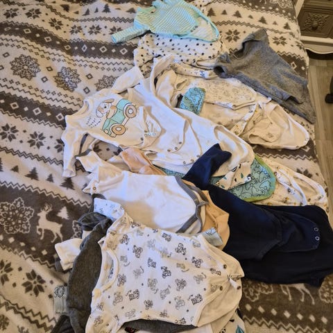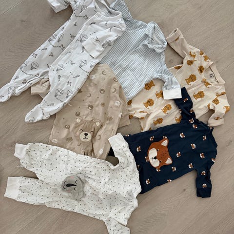 Størrelse 62. Vi fikk ikke brukt de da de var små i størrelsen. Ferdig vasket, men de var for små/passet akkurat ved 2 måneder. Så ville heller ha brukt de tidligere, feks. Samtidig som størrelse 56.