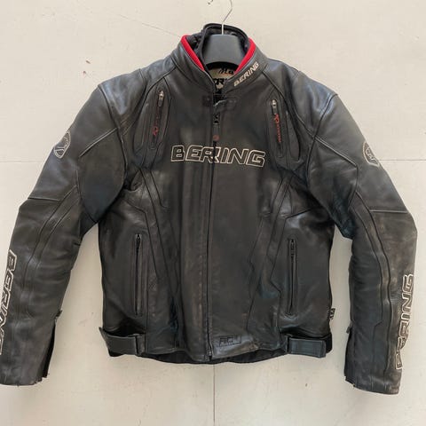 Bering Skinnjakke for herre i størrelse XL. Jakken er svart og laget av skinn. Selges da jeg har byttet motorsykkel type og jakken ikke passer til bruk da den fremmer en mer sportslig kjørestil. Kun brukt et par ganger i pent vær. Har hengt i skap ellers. Hentes helst i Bergen, men kan også sendes