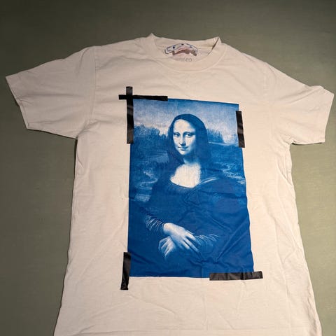 Off White Mona Lisa t-skjorte selges, aldri vasket sammen med andre klær og kun 30 grader. Har dessverre ikke tags/bag, kjøpt på Off White i London 2022.