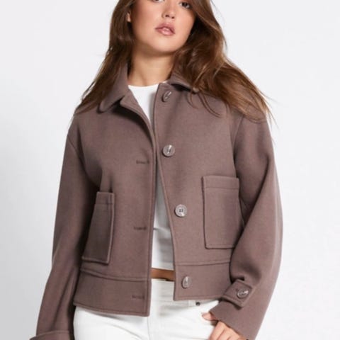 Stilren og tidløs brun jakke i mykt stoff. Perfekt overgangsjakke til vår og høst.