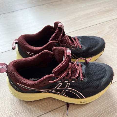ASICS Trabuco Max 3 terrengløpesko i svart med limegulgrønne detaljer. Str 41,5. Skoene er pent brukt og godt tatt vare på, med mye løpetid igjen. De passer godt til tur og løping på sti, grus og i variert terreng.