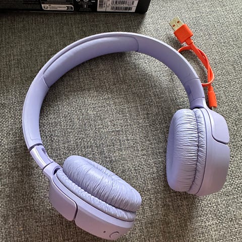 Esken er åpnet, men hodetelefonene er ikke brukt.