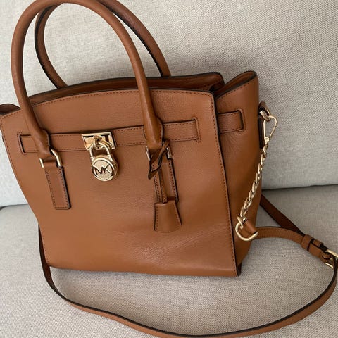 Michael Kors Semsket skinn Dame Tote bag i grønn farge. Vesken er laget av 100 % semsket skinn med skinntrim og har en håndtakslengde på 11 tommer. Den har en romslig innside med to frontlommer, en glidelåslomme og en baklomme med glidelås. Vesken måler ca. 33 x 28 x 13 cm (B x H x D) og har gullfargede detaljer.