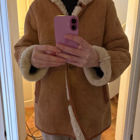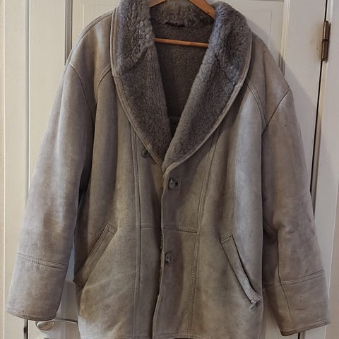 Saueskinnsjakke str 52. Denne er litt stor til meg som bruker medium. Tror det er herremodell , men kjøpt til meg som damejakke. Selges pga den er litt for stor. Ekstremt god og varm. I gin stand, tross alder.