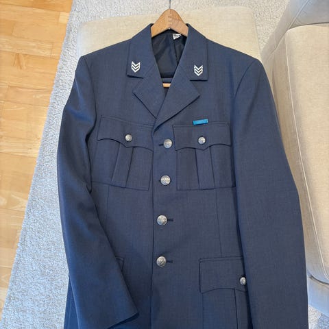 Luftforsvarets trenchcoat, str C60 kort. Lett kappe av trenchcoatmodell. Klaff på begge skuldre til bruk av hylser.
