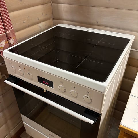 Electrolux keramisk komfyr med fire kokeplater og ovn. Varmluft, grill, kombinasjon og over/undervarme. Komfyren har mekaniske knotter for kontroll. Egnet for vanlig husholdningsbruk.