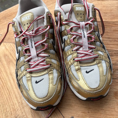 Nike Sneakers joggesko i størrelse 39. Skoene har en lys farge og er laget av tekstil og syntetiske materialer. Egnet for daglig bruk og trening.