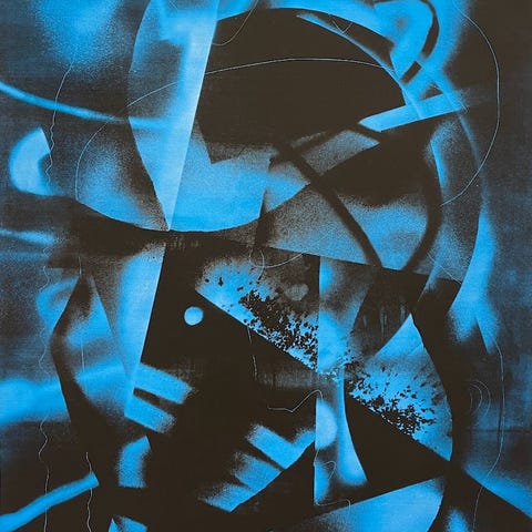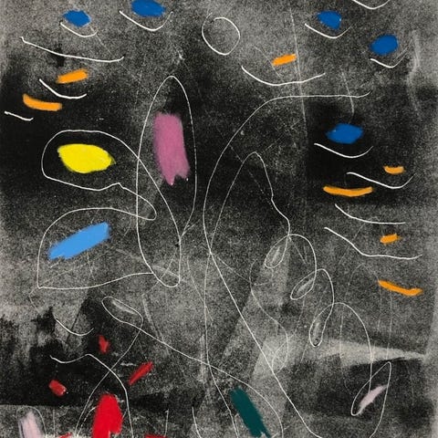 Ny pris!!!Signert serigrafi/håndkolorert, med abstrakt motiv i svart med fargerike detaljer. Bildet er innrammet og har håndskrevet signatur og årstall (2021). 35/100.