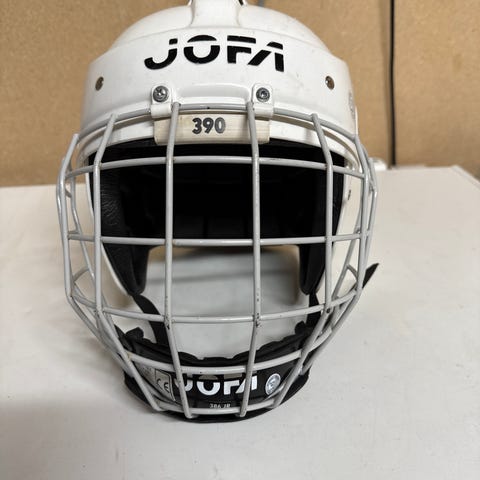 Selger en klassisk Jofa 715 LS hockeyhjelm i størrelse M. Hjelmen har justerbart fit-system bak for god passform. Normal bruksslitasje med riper i lakken, men ingen sprekker eller skader – fullt brukbar.