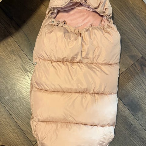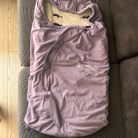 Pent brukt nyvasket Easygrow vognpose i bomull (for). Pen lys blå farge på trekket. Passer fint til høst/vår og evt på kjølige sommerdager ettersom hva man tar på barnet. Kan gjøres lengre/kortere i enden ved å zippe opp/igjen nederst glidelås.
