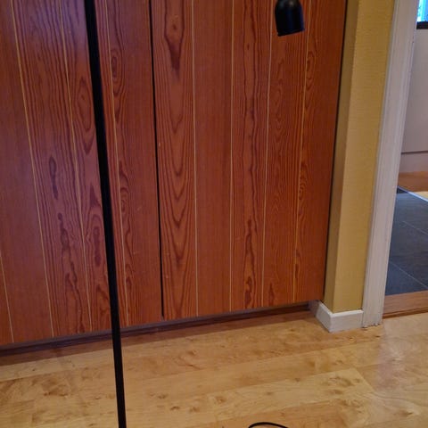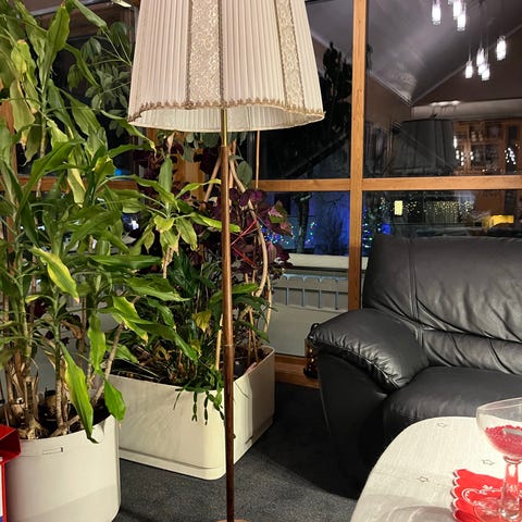 Pent brukt gulvlampe i metall som kan justeres til ønsket posisjon.