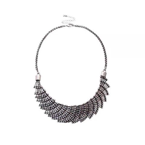 Dekorativt smykke fra Zara i V-form med en mengde runde sølvfargede former. Flott både med utringet topp og ovenpå klær.