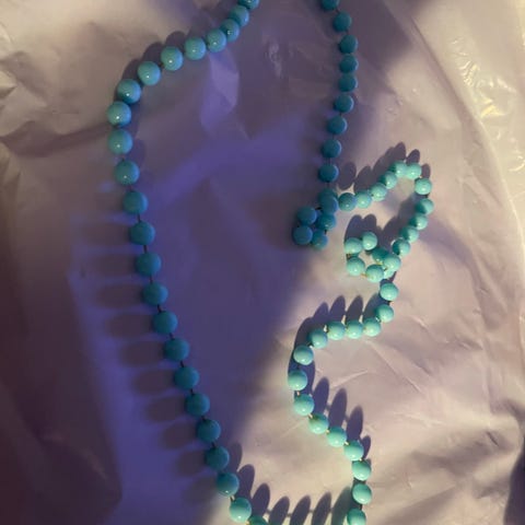 Perlekjede laget av perler. Kjedet har en rund form og en jevn perlestruktur. Usikker på steiner , høyeste bud