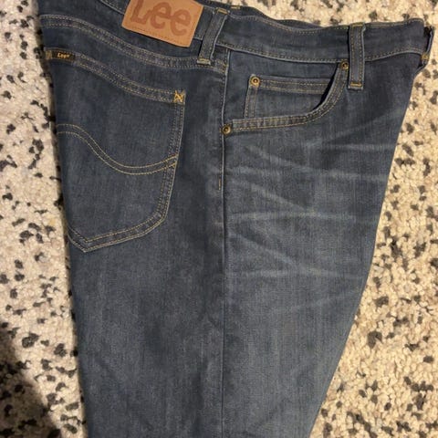 Lee M denimbukser i blå farge med midjestørrelse W31, L 32. Brukt 2 ganger.