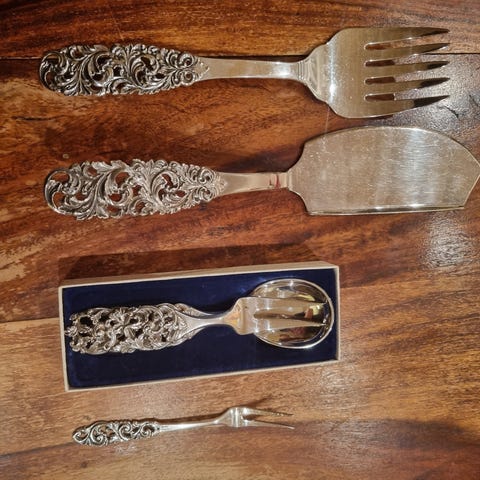 Rustfri gammel osteskjærer med dekorativt mønstret håndtak. Egnet for skjæring og servering av ost. Materiale i rustfritt stål.