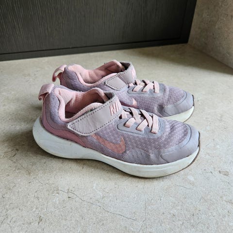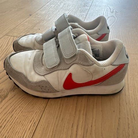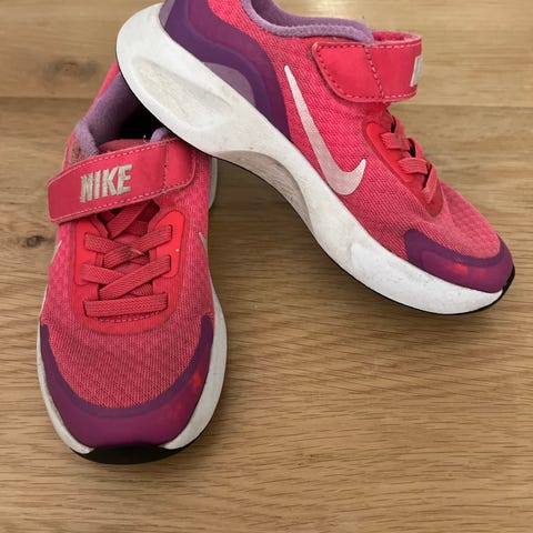 Nike barne joggesko i størrelse 28, unisex. Skoene har en rød farge og en hvit såle. Designet for barn med fokus på komfort og funksjonalitet.