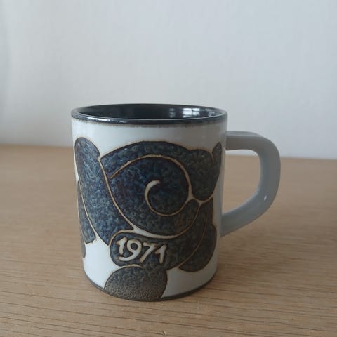 Stort og flott årskrus (1979) fra Royal Copenhagen Denmark. Diameter: 10 cm, høyde: 11,5 cm.