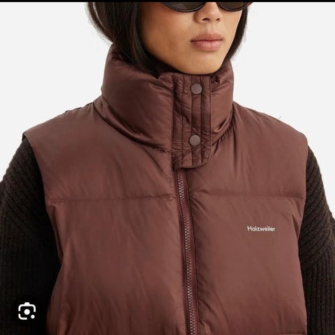 Holzweiler vest i dun for kvinner, størrelse M/L i grå farge. Vesten er designet for utendørs bruk og gir isolasjon og varme.