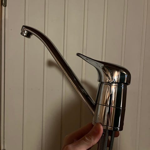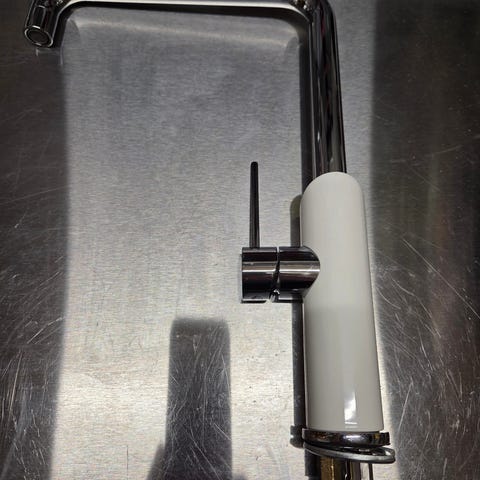 Blandebatteri for kjøkken i krom utførelse med tilkoblingsslanger. Passer for standard kjøkkeninstallasjoner.