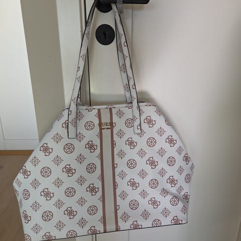 GUESS Meridian Girlfriend Tote dameveske laget av kunstlær. Vesken har justerbart håndtak, en høyde på 30 cm, en lengde på 35 cm og en vekt på 880 g. Den har nøklering, spenne og forsterket base.