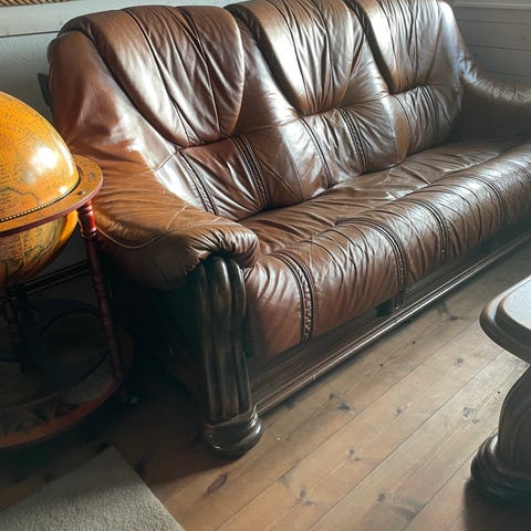 Sofaen er grei, tapet ett hull. Den trenger en rens.