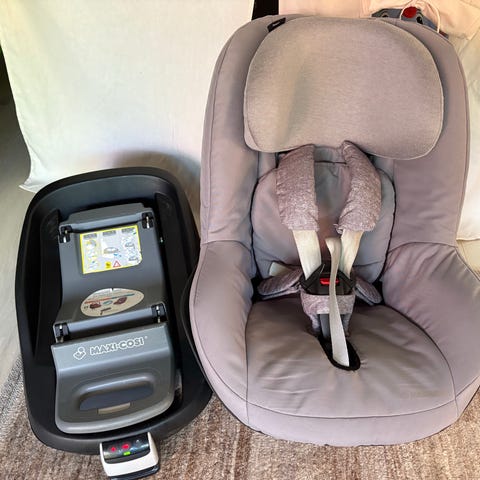 Pear Pro sete med base som er brukt av 2 barn. Setet er godt brukt og har en del merker.