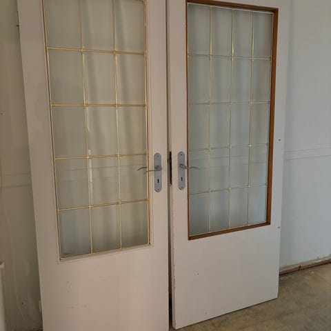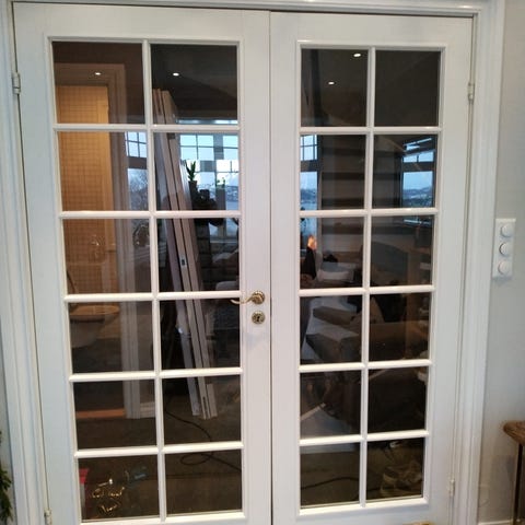 Hvit dobbeltdør med glassruter
