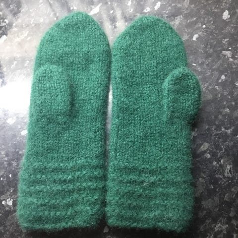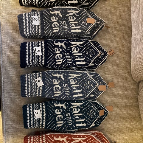 Strikket I garn fra hillesvåg og lett tovet. 250kr + porto.