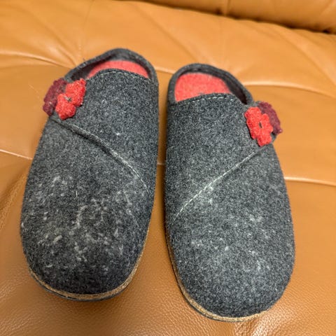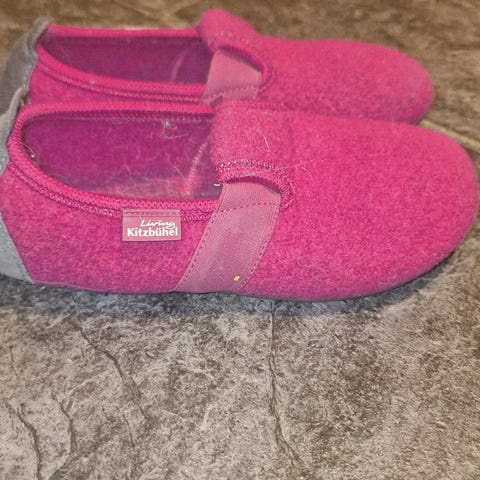 Varme og gode røde ulltøfler med stødig gummisåle. Lite brukt, ingen synlige brukstegn. Str 38. Er blitt for små til meg. Kr 350