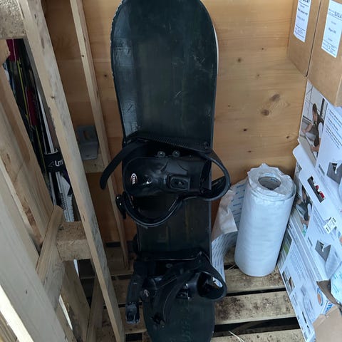 Eldre snowboard 118 cm med defekte bindinger