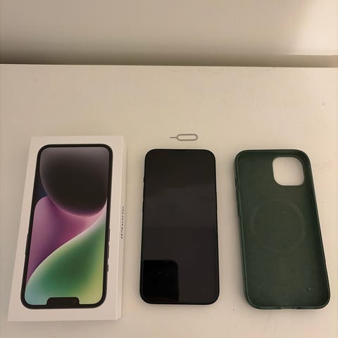 Apple iPhone 14 mobiltelefon med 256 GB lagringskapasitet i lilla farge.