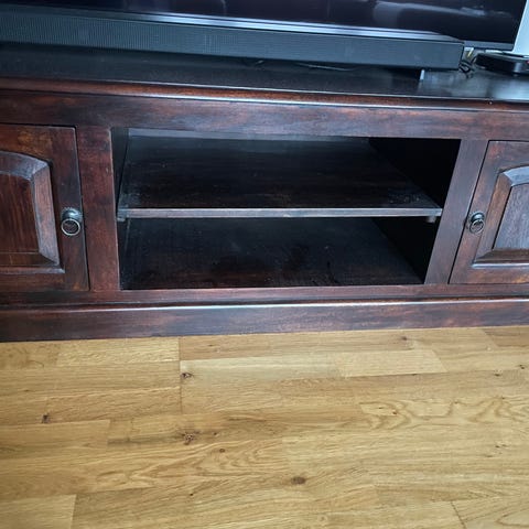 Skjenk/TV-benk med topplate i glass
