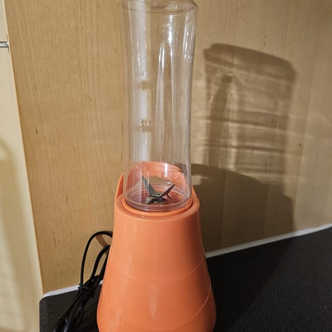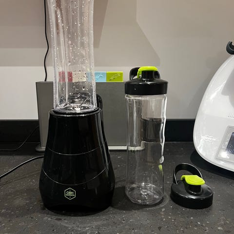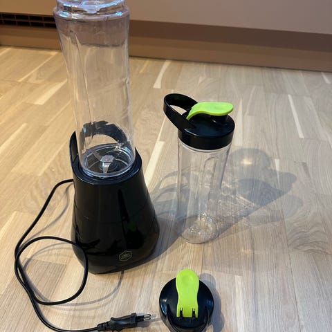 OBH Nordica Twister Go. Smoothie Maker mes fire gjennomsiktige flasker - tre store og én liten med lokk i ulike farger. Inkluderer et ekstra klivblad for miksing. Egnet for tilberedning av smoothies og andre drikker. Lite og pent brukt, selges pga plassmangel. Hentes i Lørenskog eller sendes.