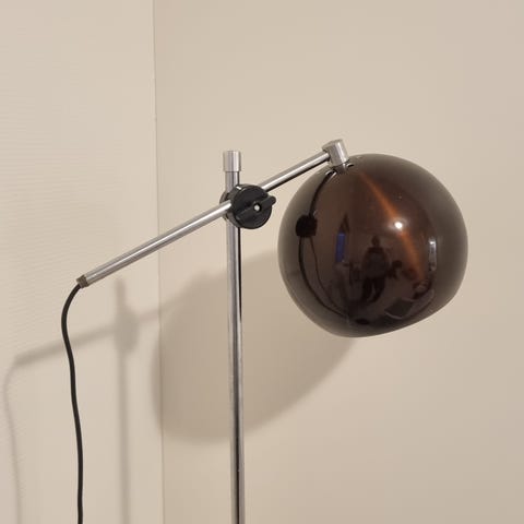 Solid og tidløs bordlampe i massivt dreid tre, produsert av C.G Sörbackens snickeri i Hyssna, Sverige. Lampen er merket 1471, og fremstår som et kvalitetsprodukt fra 90-tallet. Lampen har lys stoffskjerm, som passer til lampens klassiske uttrykk. Pent dreid fot med fine detaljer og stabil rundt base.