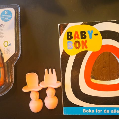 Bestikk med enklere vinkel for baby for å lære å spise selv. Selges samlet.