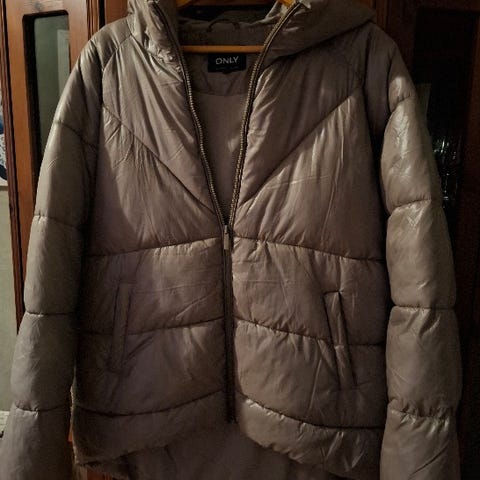 Selger en svart jakke i fuskepels. Veldig fin og varm.