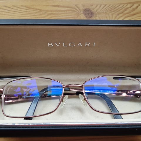 Heklet veske i mørk brun og brunt/gull glittergarn.